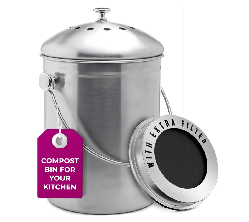 This is a countertop odorless compost bin. Makes composting easy and effortless. Just fill, dump in an outdoor compost heap and repeat.